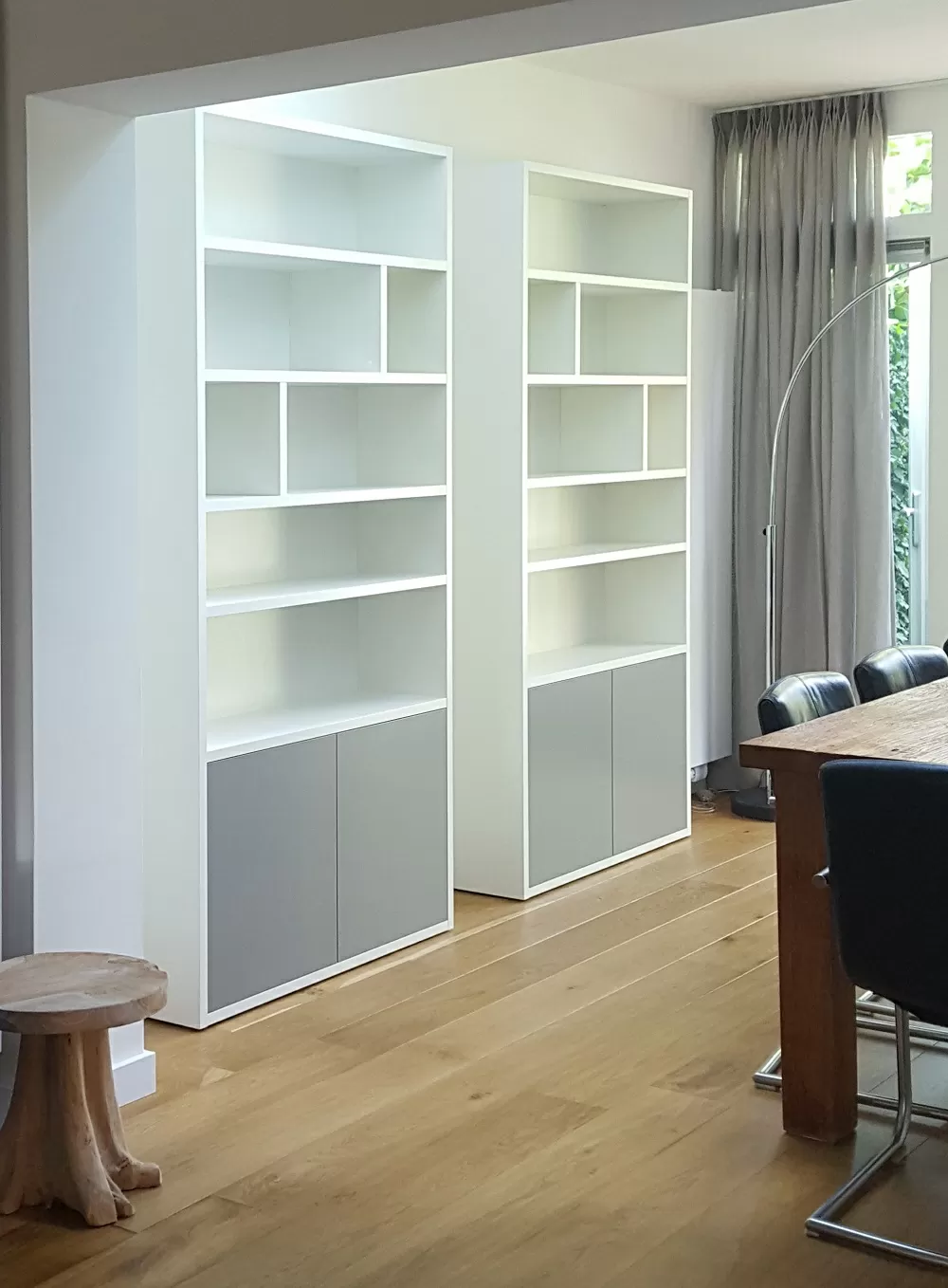 Uw boekenkast, wandvullend van muur tot muur van vloer tot plafond. Vol met uw kostbare boeken. Wij maken van uw boekencollectie een ware bibliotheek. Voor elke ruimte een boekenkast op maat. Onder het schuine dak, door de hoek of over een deur. Zelfs een boekenkasttrap behoord tot de mogelijkheden.